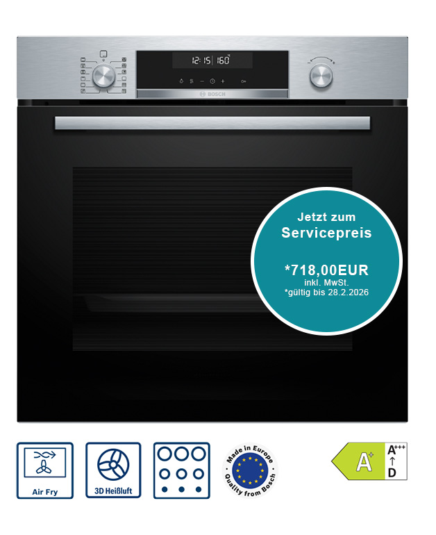 Bedienung mit LCD-Display- Elektronik-Uhr - Optische Aufheizkontrolle - Temperaturvorschlag - Autostart - AutoPilot - AutoPilot 30 Programme - Klapptür - Backofengriff aus Aluminium - Klapptür mit Soft Close und Soft Open: Sanftes Öffnen und Schließen der Backofentür. - AutoPilot: Mit den Automatikprogrammen gelingt die Zubereitung immer. Einfach Gericht auswählen und Gewicht einstellen. - Schnellaufheizung: Schnell zur Zieltemperatur ohne höheren Energieverbrauch - Backofenbeleuchtung abschaltbar, Halogen-Innenbeleuchtung - Kühlgebläse