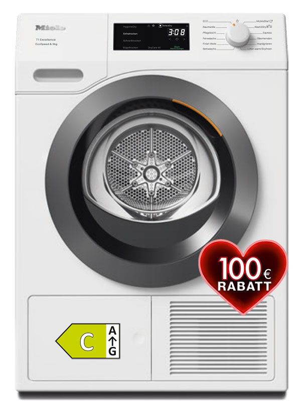Vernetzung mit Miele@home • Wash2Dry • Startvorwahl bis zu 24h • Restzeitanzeige • Programmablauf-Anzeige Nein Trommelbeleuchtung LED Kondensatbehälter • Integrierte Kondenswasserableitung • AddLoad • Effizienz und Nachhaltigkeit EcoDry-Technologie • Wartungsfreier Wärmetauscher • Profico Motor • EcoSpeed